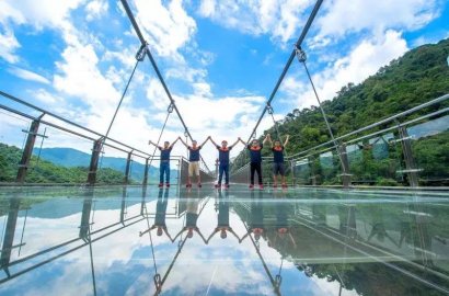 昨天上午, 在懸空跨度72米、直徑16.8米的懸空玻璃平臺上,來自世界紀(jì)錄協(xié)會(World Record Association)的美國認(rèn)證官邁克·溫特森和中方認(rèn)證官張健宣布,清遠古龍峽景區(qū)的懸空玻璃平臺、玻璃吊橋、玻璃觀光組合、叢林飛躍四個項目,挑戰(zhàn)世界紀(jì)錄成功。